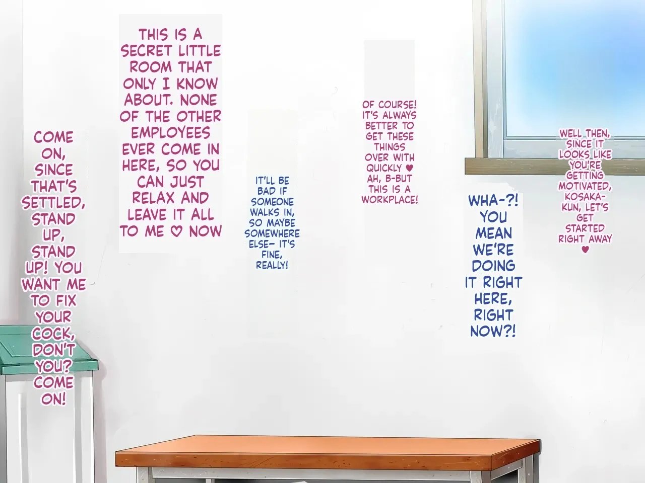 The pheromone-filled lady with see-through breasts who is always at my part-time job, is constantly eyeing my impotent limp dick! comic porn